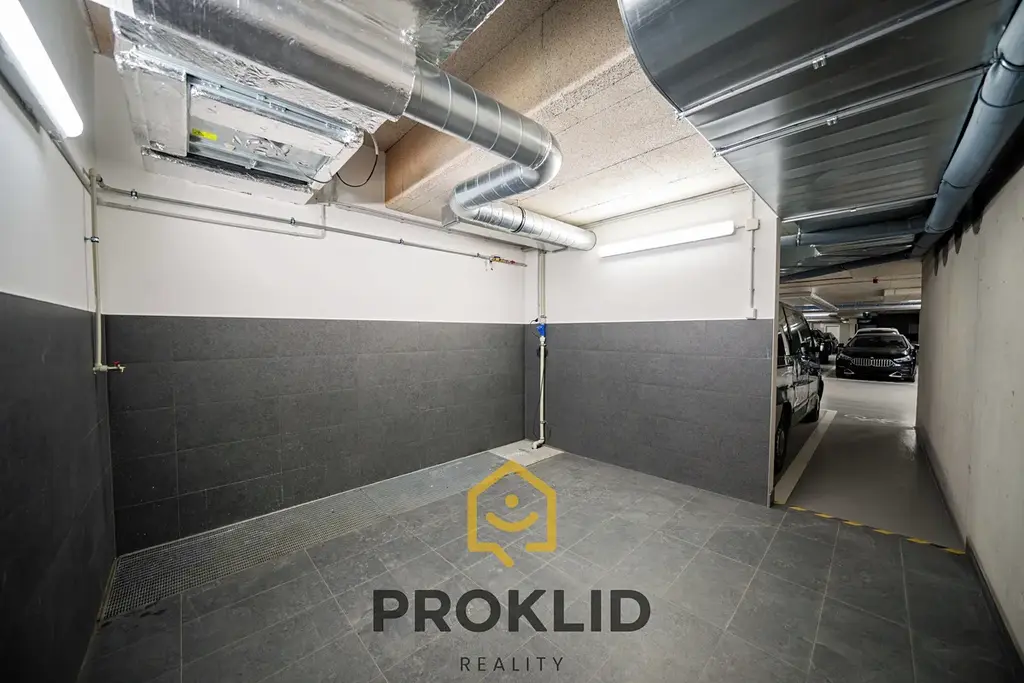 K bytu je možné navíc přikoupit 2× garážové stání s vlastními el. zásuvkami a přípravou pro elektromobil na sloupu vedle stání. Dále 1× sklep, který zaujme svým nadstandardním prostorem (16,97 m²) a tím řeší kompletní problémy kolem úložných prostor majitelů bytů. V garážích je velice praktická umývací mistnost např. pro kola, kočárky atd.
