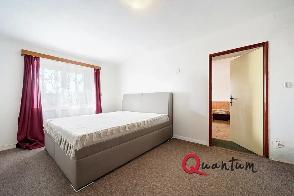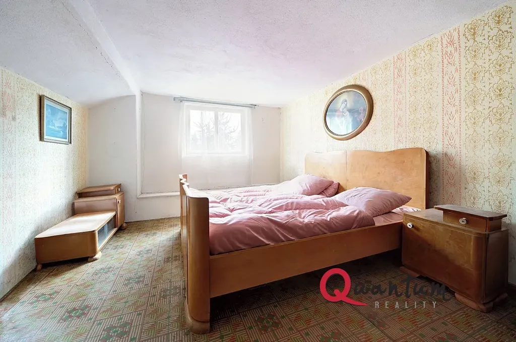 Podkroví, které zasahuje i nad hospodářskou část, nabízí kromě uvedeného pokoje také velkorysý půdní prostor vhodný k vestavbě.