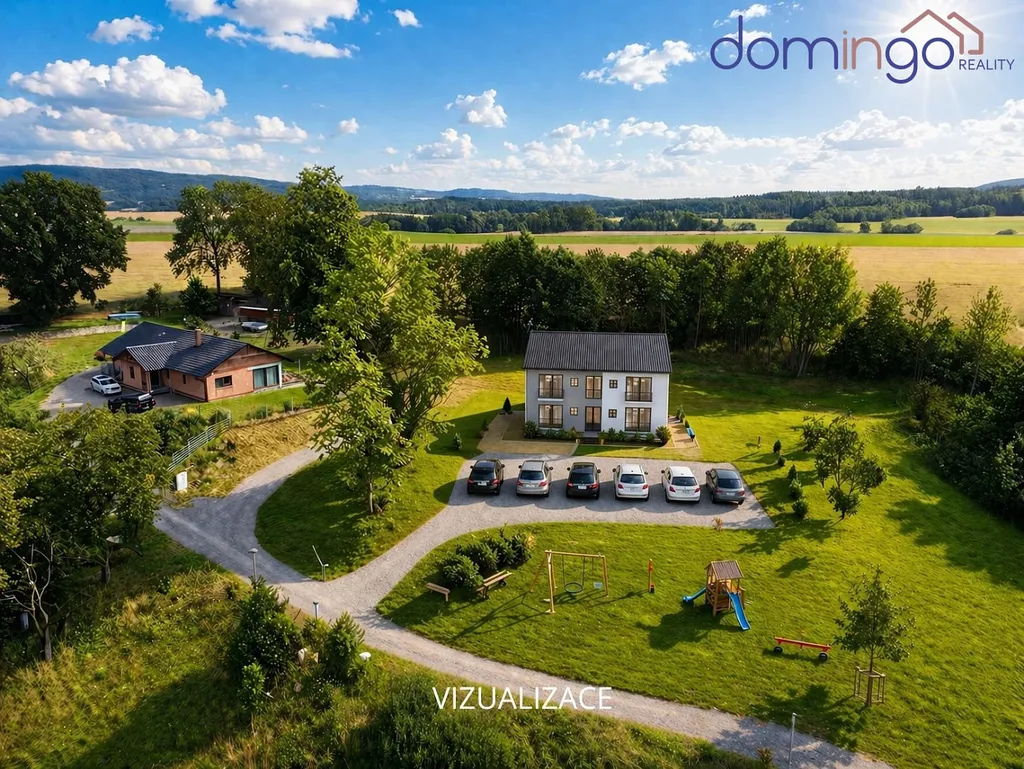 Nabízíme soubor pozemků na strategickém místě v mírném svahu o velikosti 1519 metrů vhodných dle platného územního plánu k výstavbě pro venkovské bydlení VČETNĚ MOŽNÉ VÝSTAVBY 2 PODLAŽNÍHO BYTOVÉHO DOMU O MAXIMÁLNĚ 6 BYTECH s povolenou zastavitelnou plochou 50% a valbovou nebo sedlovou střechou. Nebo 2 domků.