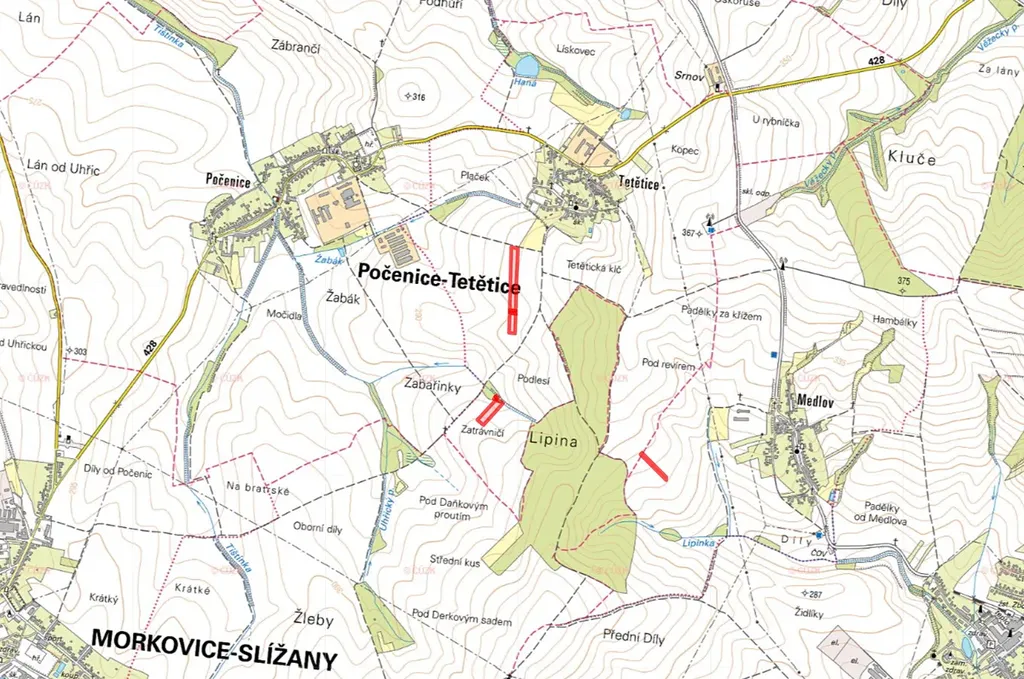 Nabízíme k prodeji soubor pozemků ve výlučném vlastnictví v okrese Kroměříž. Pozemky se nacházejí ve dvou katastrálních územích: Medlov u Zborovic a Tetětice, obec Počenice-Tetětice.