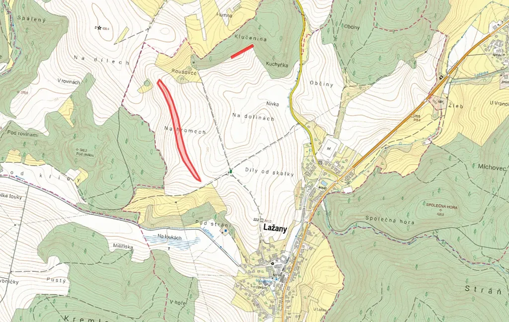 Nabízím ke koupi vlastnictví na dvou zemědělských pozemcích v katastrálním území Lažany, okres Blansko. Všechny parcely jsou zapsány na listu vlastnictví č. 444. Jedná se: