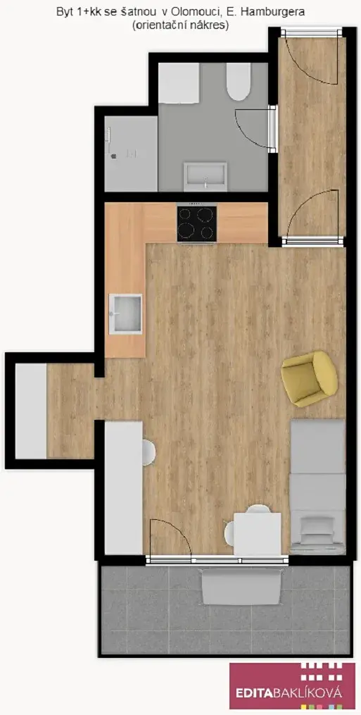 Nabízíme k pronájmu plně vybavený byt 1+kk s balkonem, v novostavbě, v blízkosti centra města.