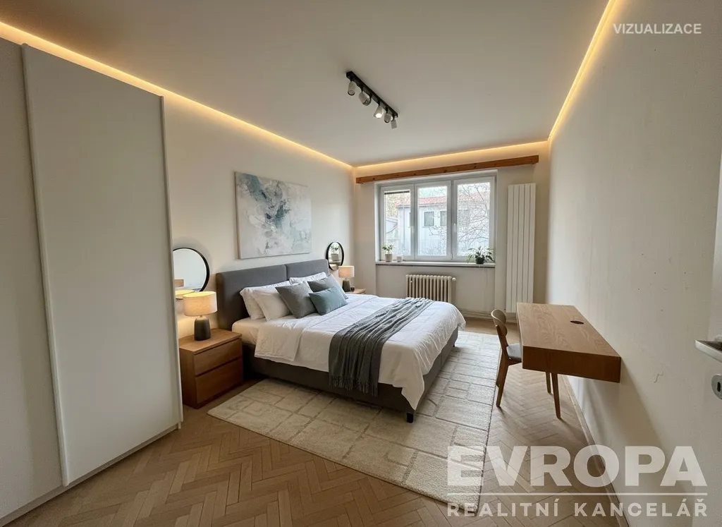 Dispozice bytu nabízí praktické rozdělení místností, možnost vytvoření moderního 4kk. Dva pokoje jsou orientovány do ulice a jeden pokoj s kuchyní do vnitrobloku. K bytu náleží sklepní kóje a spoluvlastnický podíl na předzahrádce orientované do vnitrobloku.
