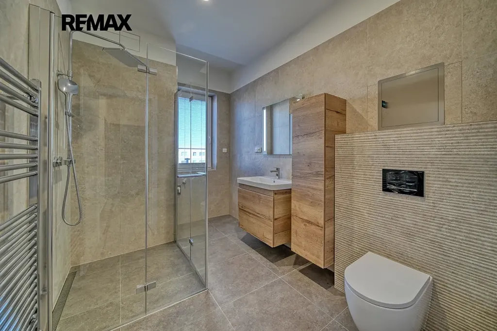 • koupelna se sprchovým koutem a nábytkem na míru