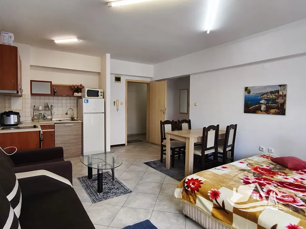 Lokalita patří mezi nejpraktičtější na celém Slunečném pobřeží. Přímo u domu najdete supermarket Mladost, restaurace, obchody i další služby. Autobusové nádraží, lékárna i místní trhy jsou v docházkové vzdálenosti, což zajišťuje pohodlné fungování nejen v létě, ale i během celého roku.