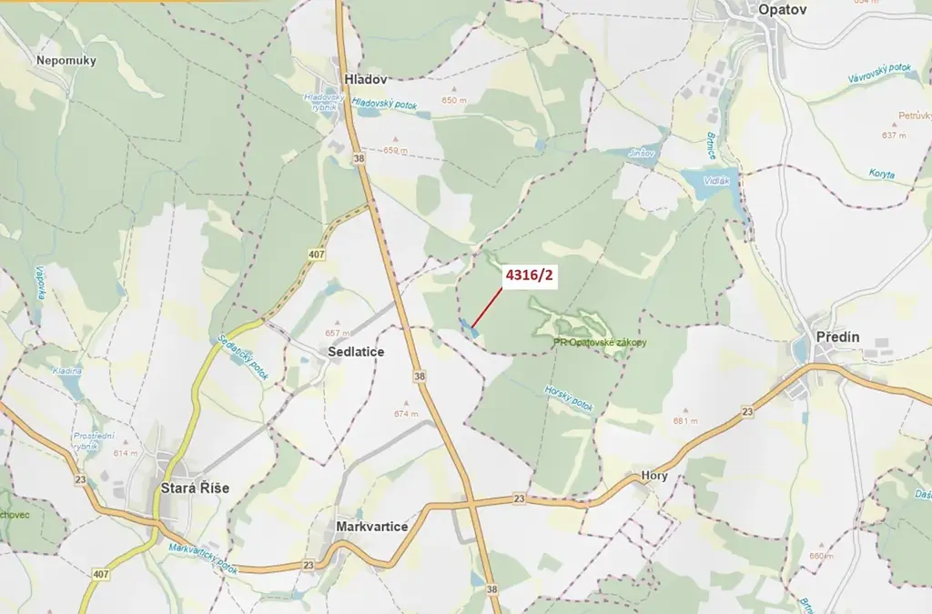 Dražba lesa, Opatov, 7085 m2 (ID: 2600327)