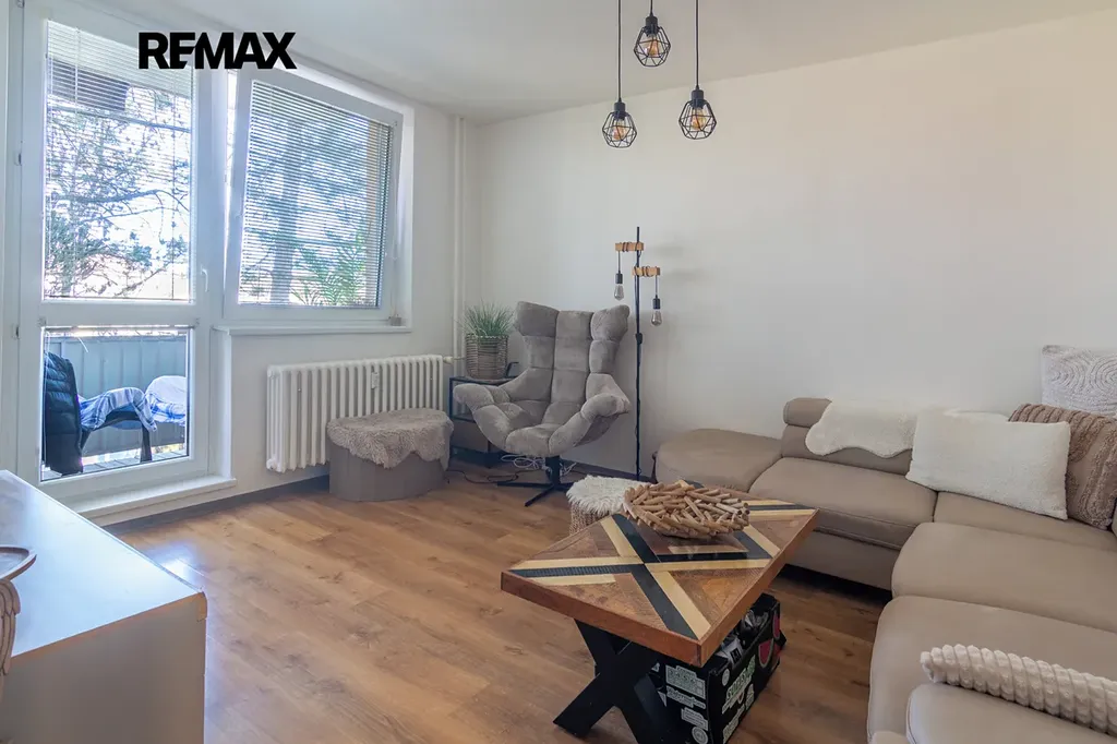 Byt prošel v nedávné době rekonstrukcí. Má nové rozvody elektřiny, zděnou koupelnu s vanou, plovoucí podlahy a hlavně na míru zhotovenou kuchyňskou linku s vestavěnými spotřebiči - myčka, indukce, lednice s mrazákem, mikrovlnka, trouba, digestoř, která je chloubou celého bytu. Byt nabízí také dostatek úložného prostoru - vestavěné skříně v pokojích, na chodbě. Byt se nabízí pouze částečně zařízený - jídelní stůl s židlemi, komoda v ložnici, knihovnička a police v dětském pokoji.