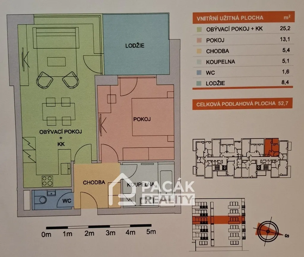 Ve výhradním zastoupení majitelky nabízíme k prodeji moderní byt 2 + kk o výměře 52,7 m2 v osobním vlastnictví s lodžií, dvěma skladovacími prostorami a s garážovým parkovacím stáním v suterénu bytového domu v příjemné a klidné lokalitě města Olomouce na ulici A. Rašína. Nespornou výhodou tohoto bytu jsou nízké provozní náklady. Bytová jednotka je umístěna v 4. NP bytového domu s nízkým počtem bytových jednotek, který byl postaven před 10 lety. Velkou předností této lokality je dostatek zeleně a odpočinkových zón, výborná občanská vybavenost, dostupnost na MHD a bezproblémový výjezd na dálnici. Bytová jednotka je účelně řešena, dispozice bytu nabízí uživatelům prostorný obývací pokoj o ploše 25,2 m2 s kuchyňským koutem vybaveným kuchyňskou linkou se spotřebiči. Obývací pokoj díky své ploše umožnil rozdělení prostoru na část relaxační a prostor pro jídelnu. Další pokoj-ložnice o ploše 13,1 m2- je přístupný z chodby, stejně jako prostorná koupelna s WC a šatnu s možností umístění automatické pračky. Zázemí pro relaxaci nabízí uživatelům bytu čtvercová lodžie o ploše 8,4 m2,přístupná z obývacího pokoje i z ložnice. Nadstandardně k bytu přináleží i dvě komory o ploše 3,3 m2 a 2,6 m2, které jsou umístěny naproti vstupním dveřím ve stejném podlaží jako byt. Bytový dům v hodnocení energetické náročnosti budovy je zařazen do kategorie B, což se příznivě promítá do nákladů na bydlení. Jedinečným bonusem pro majitele bytu je vlastnictví i garážového parkovacího stání v suterénu bytového domu přímo u výtahu. Jedná se o zajímavou investiční příležitost pořídit si v Olomouci byt 2 +kk s prostornou lodžií a možností parkování na vlastním garážovým parkovacím stáním v suterénu domu. S financováním nákupu bytu vám poskytne informační servis náš finanční poradce. Doporučujeme prohlídku tohoto zajímavého bytu.