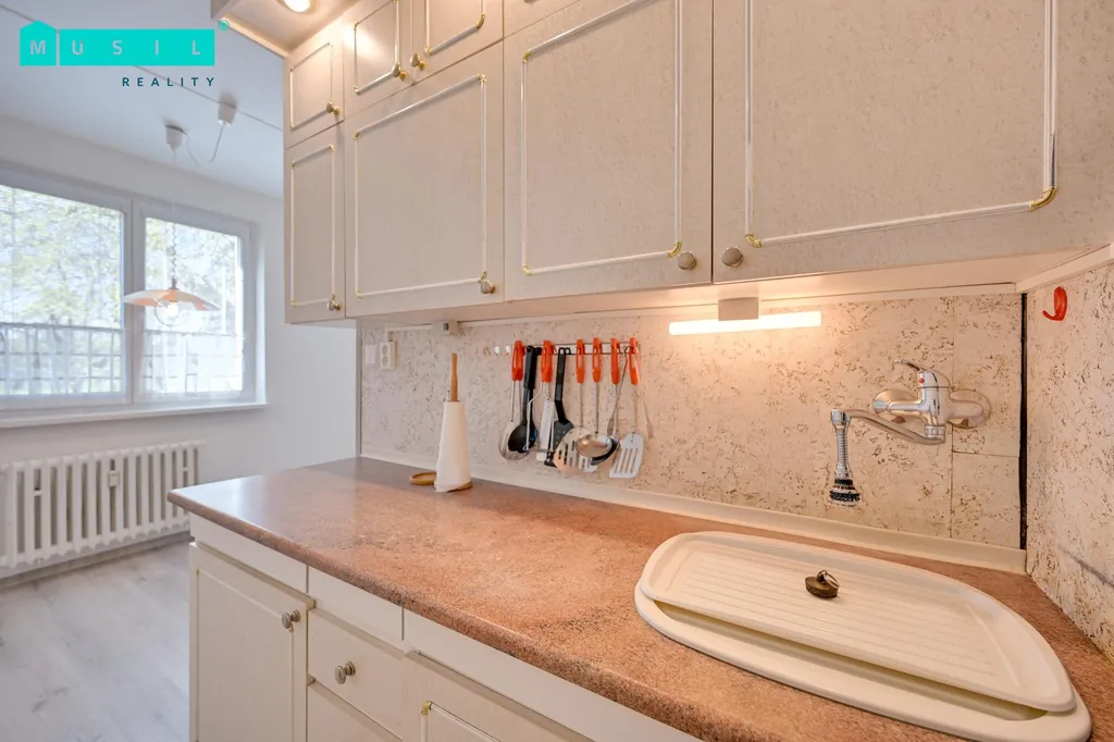 Byt je v udržovaném stavu, má částečně nové podlahy a nová plastová okna. Kuchyňská linka je v původním, ale funkčním stavu a je vybavena sporákem a lednicí. Koupelna prošla částečnou rekonstrukcí a je zde vana. Byt je nevybavený.