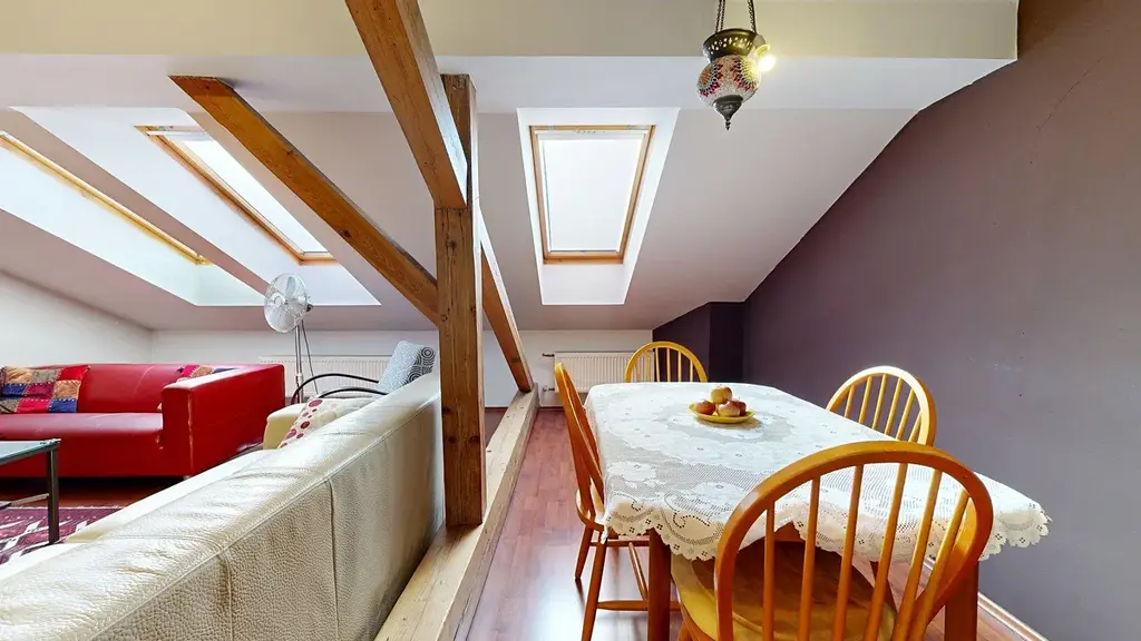Tento byt spojuje moderní bydlení s jedinečnou atmosférou podkroví.