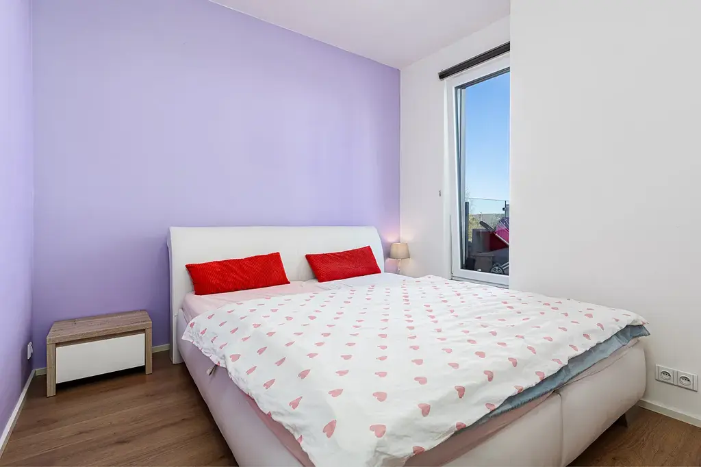 Dispozice bytu je navržena tak, že z prostorné předsíně je přímý vstup do všech obytných místností.