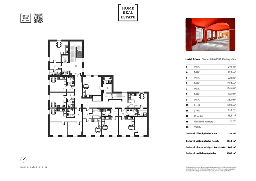 • nová celková podlahová plocha: 1 886 m²