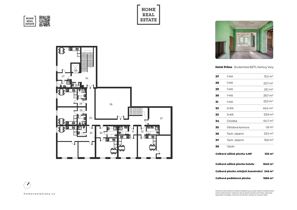 • nová celková podlahová plocha: 1 886 m²