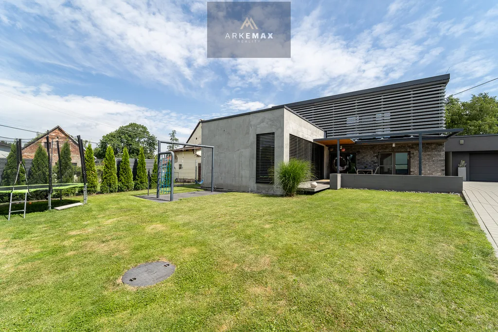 Součástí domu je také rozsáhlá relaxační zóna – bazén, sauna a prostor pro cvičení, které zajišťují maximální pohodlí přímo v soukromí domova.