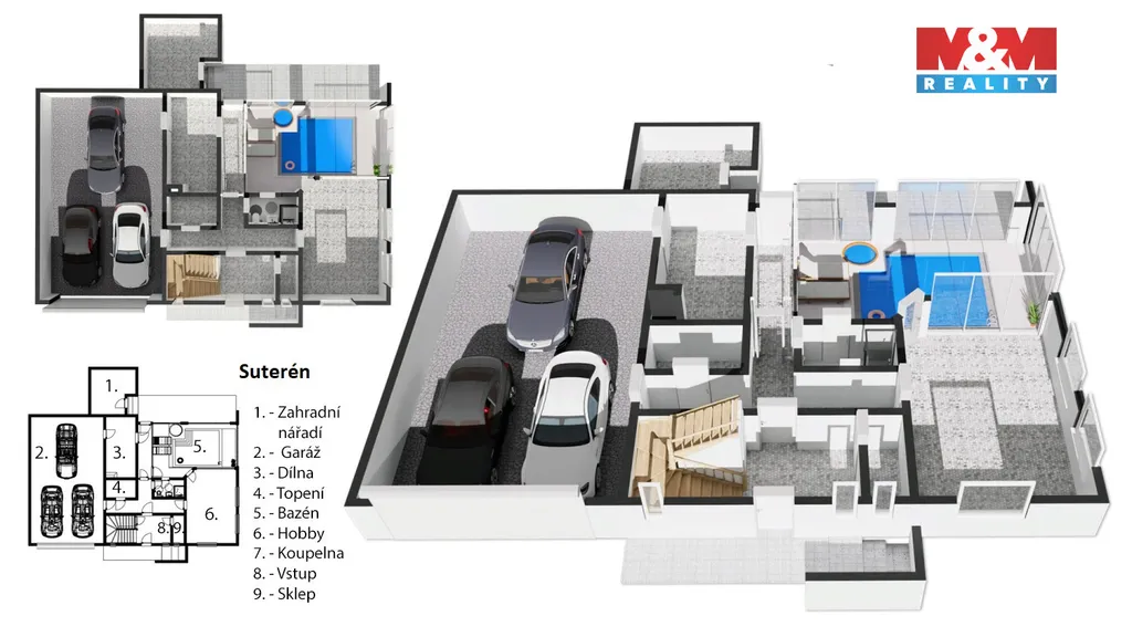 Nabízíme k prodeji velkorysý rodinný dům se třemi bytovými jednotkami a společným zázemím z roku 2005 o celkové ploše přes 650 m² na exkluzivním místě přímo u lesa v klidné části obce Tuchoměřice. Tato unikátní nemovitost přímo vybízí k neomezeným možnostem využití, a to jak jako vícegenerační bydlení, tak na investici, tak jako zázemí prosperující společnosti. V nemovitosti se nachází: v suterénu garáž pro 4 auta, technické/skladovací prostory, koupelna s WC, vnitřní bazén a pracovna. V 1. a 2. NP se nachází 2 prostorné byty 5+1 s krbem a terasou, každý o velikosti přes 195 m². Ve 3. NP je byt 1+kk o velikosti 48 m². Současné půdorysy i vizualizace možného budoucího stavu přikládáme do fotografií. Dům stojí na jižně orientovaném pozemku s výhledem do lesa, součástí pozemku je i tenisový kurt, celková plocha parcely 2.259m². Parkovací místa jsou jak v garáži, tak před domem, tak na ulici. Metro Dejvická/Bořislavka cca 20 minut jízdy. Pro více informací nás neváhejte kontaktovat.
