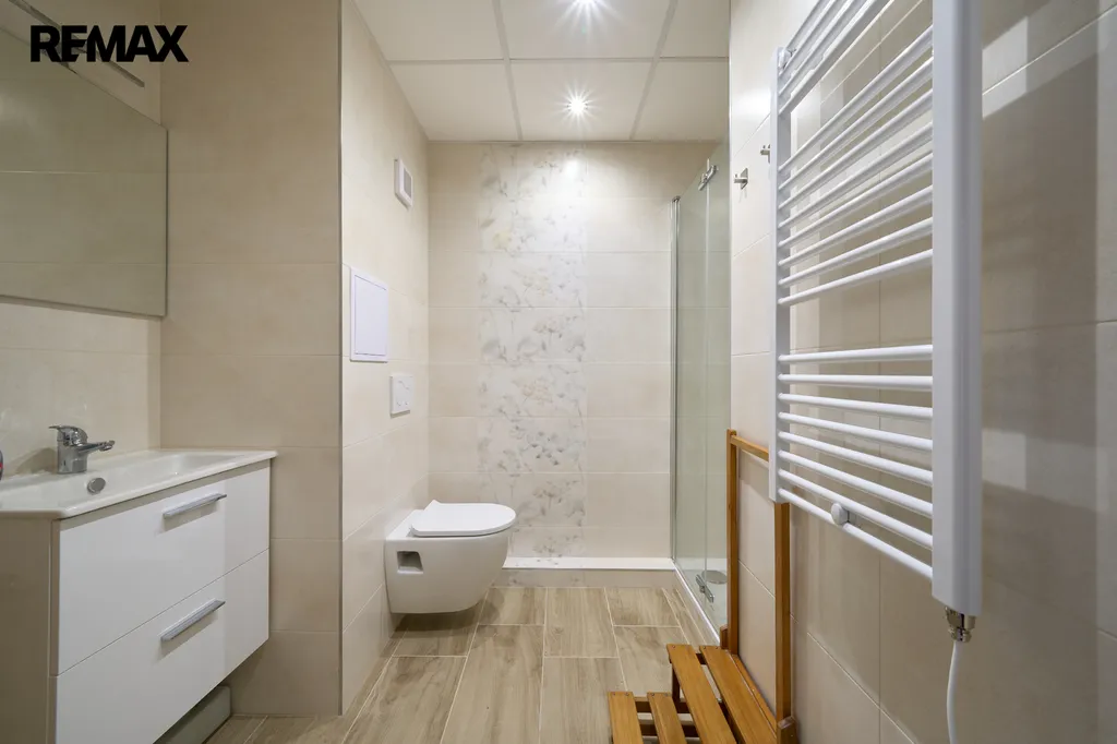 K dispozici je také kolárna v domě. Vytápění i ohřev vody jsou řešeny dálkově. Průkaz energetické náročnosti budovy - třída C