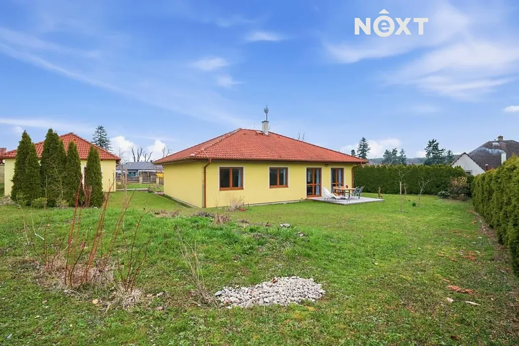 Dům stojí na pozemku o 1 280 m² a nabízí promyšleně řešený, prostorný interiér: