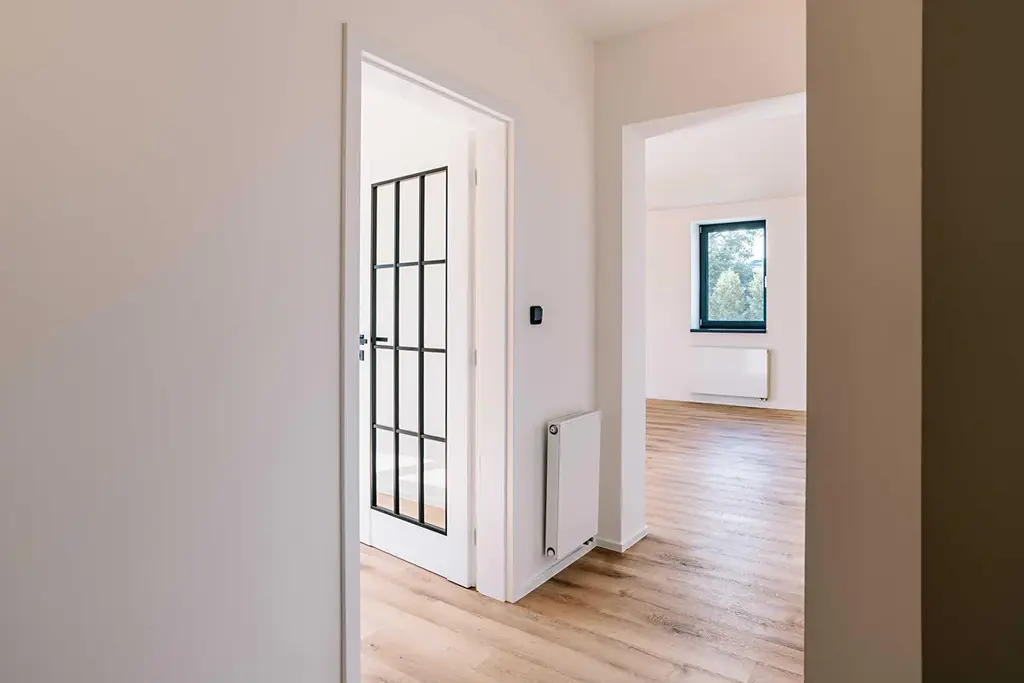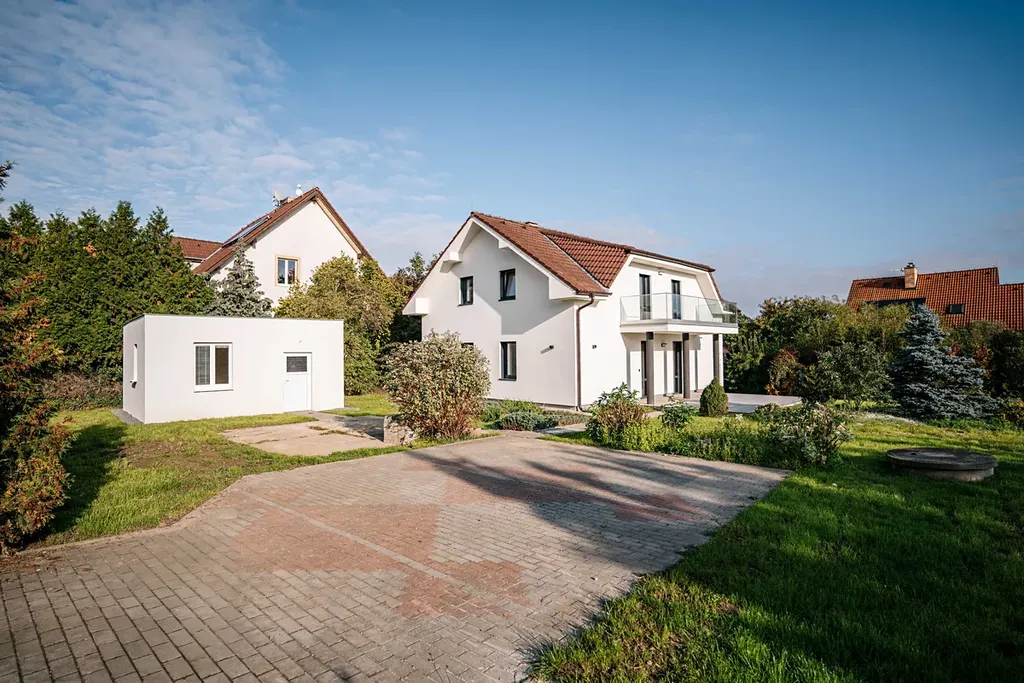 Na klidném místě v Dolních Břežanech, v části Zálepy, vznikl domov, který spojuje moderní design, promyšlenou dispozici a dotek přírody hned za plotem.