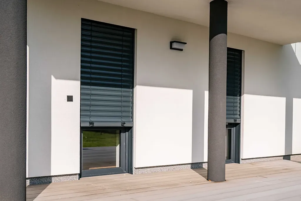 Dům je vybaven před okenními žaluziemi ovládanými přes mobilní aplikaci. Přes stejnou aplikaci je možné ovládat i vytápění. Dešťové vody jsou svedeny do retenční nádrže, na pozemku je navíc vlastní studna pro zalévání.