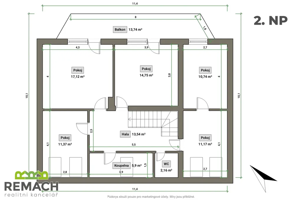 V prvním patře jsou čtyři ložnice, ze dvou z nich je vstup na lodžii, kde máte opět výhled na zahradu a okolní krajinu.