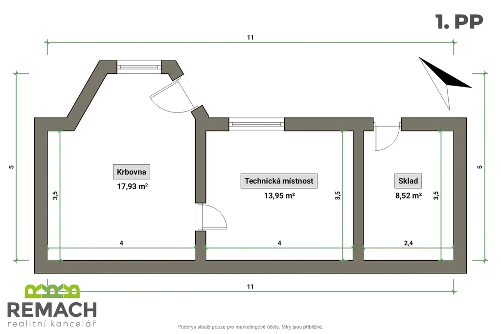 V nejnižším patře je místnost s krbem. Její využití ponechám na vaší představivosti. Můlže sloužit třeba jako místnost na trofeje, párty místnost nebo třeba pokoj pro hosty. Tato místnosti dále navazuje na "sklep", ale především na terasu, kde si vychutnáte posezení v klidu a zeleni. Okouzlí vás dále vzrostlá zahrada, vinohrad a množství ovocných stromů.