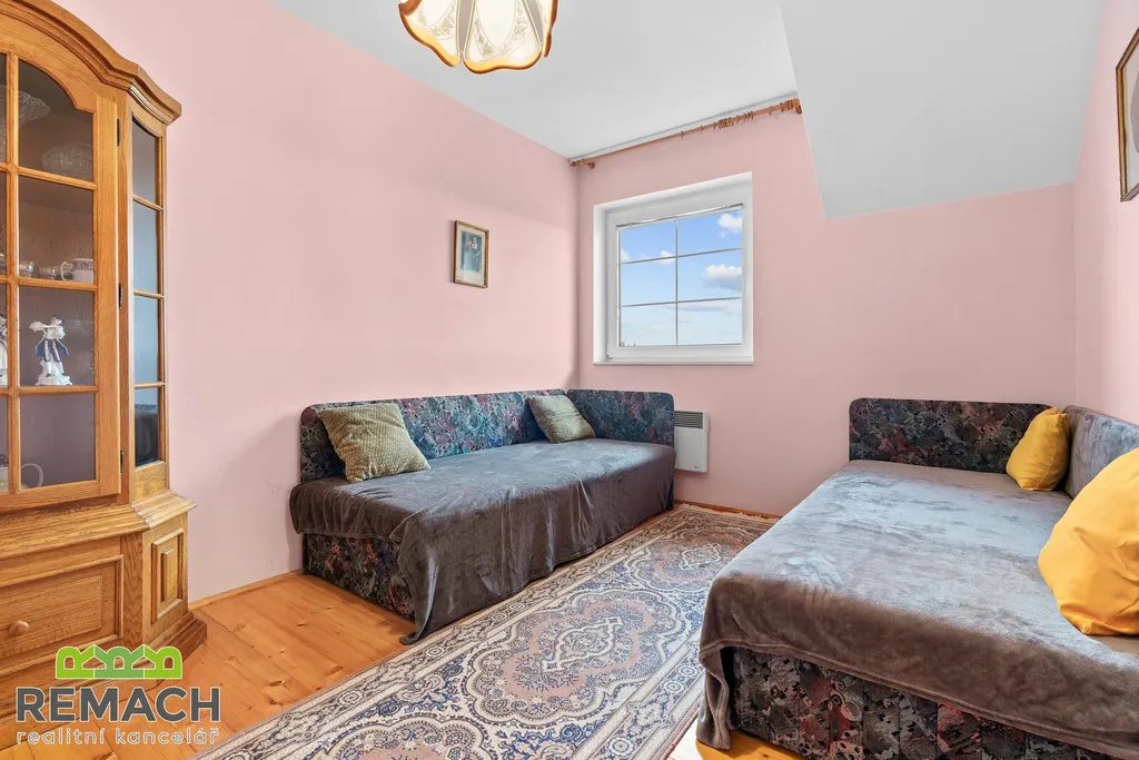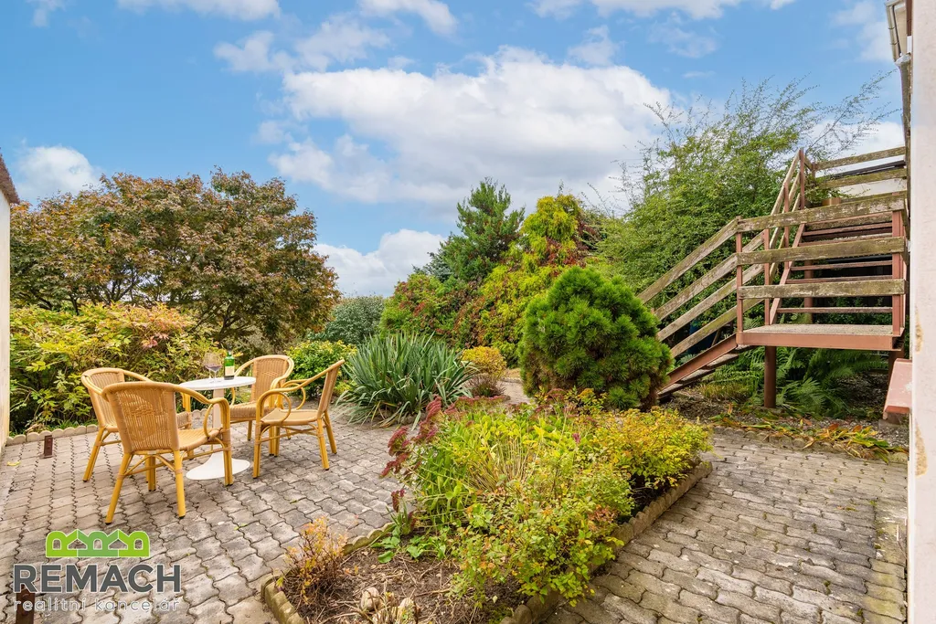 Zvenku vás ani nenapadne, co vše vám tento dům nabídne. Ukrývá v sobě dispozici se čtyřmi ložnicemi, prostorným obývacím pokojem, kde dominantou jsou kachlová kamna. Díky prosklení ze severní i jižní strany je úžasně světlý, navíc s výhledem na vaši zahradu s vinohradem, nejen z terasy, která na něj navazuje.