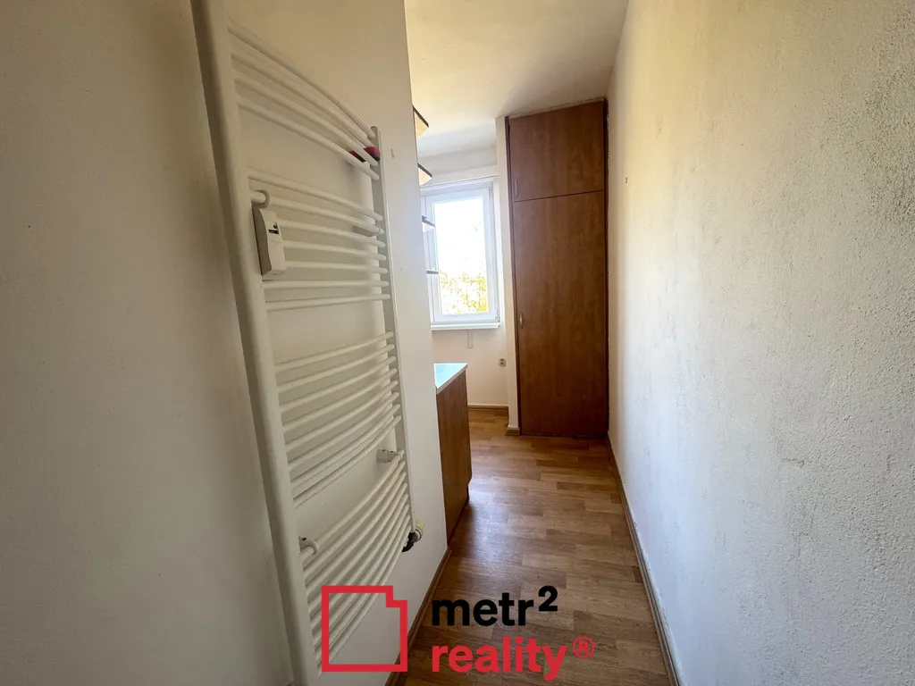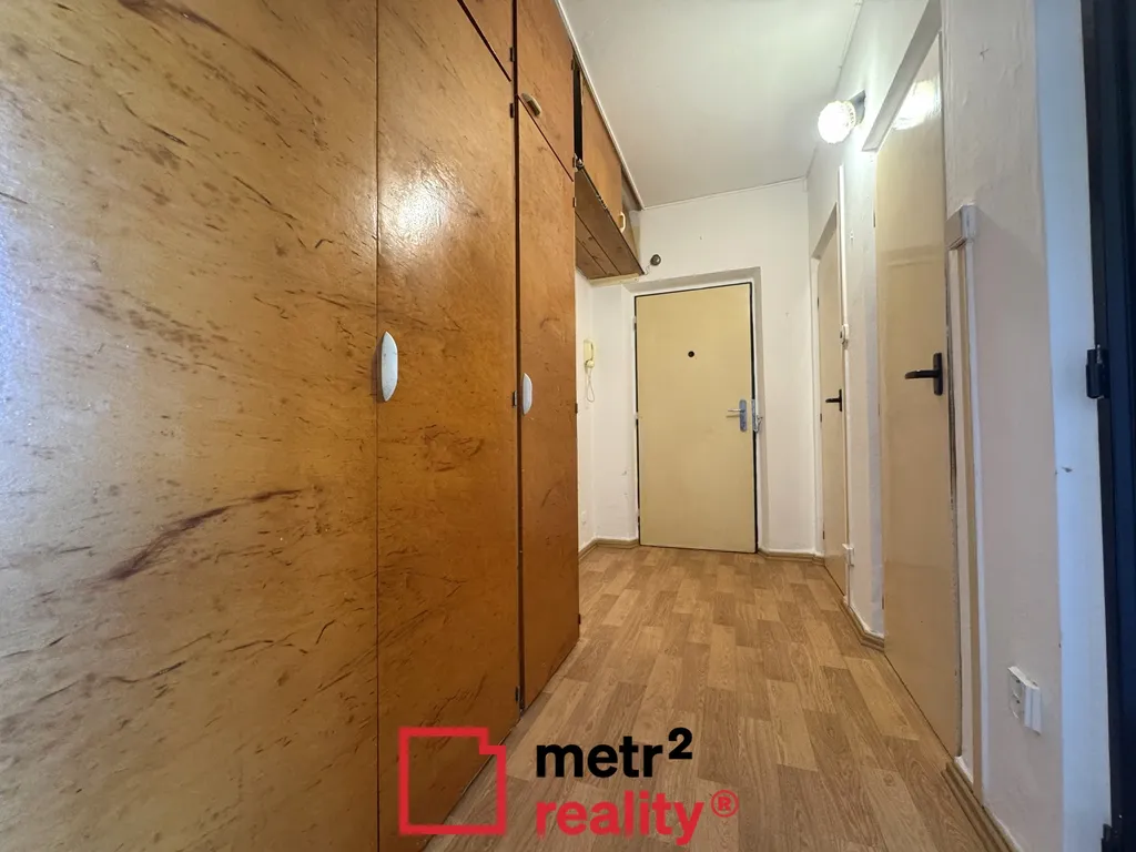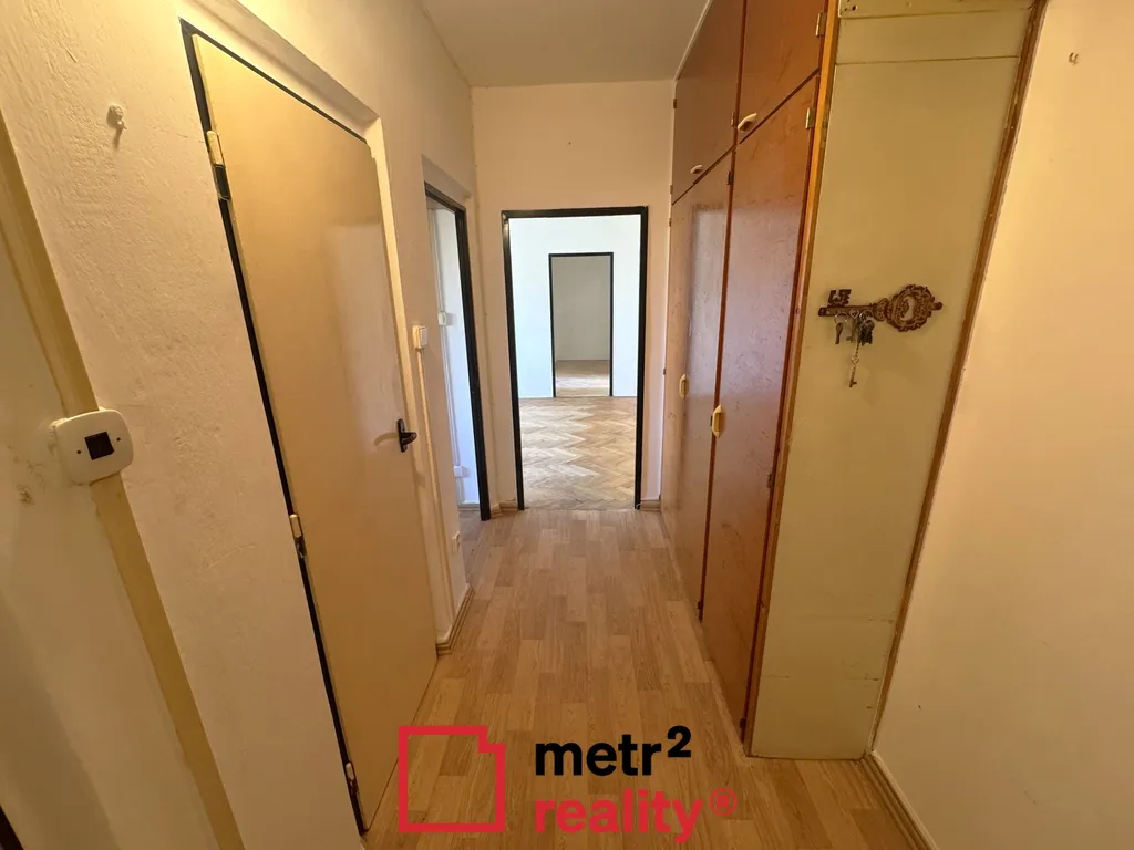 Dispozice bytu zahrnuje samostatnou kuchyni s kuchyňskou linkou a kombinovaným sporákem, obývací pokoj se vstupem na balkon, dva neprůchozí pokoje, vstupní chodbu s vestavěnými skříněmi, koupelnu se sprchovým koutem a samostatné WC. Velmi praktickým prvkem je také prostorná část mezi ložnicí a dětským pokojem, kterou lze využít jako šatnu, pracovní kout, komoru nebo technickou místnost.