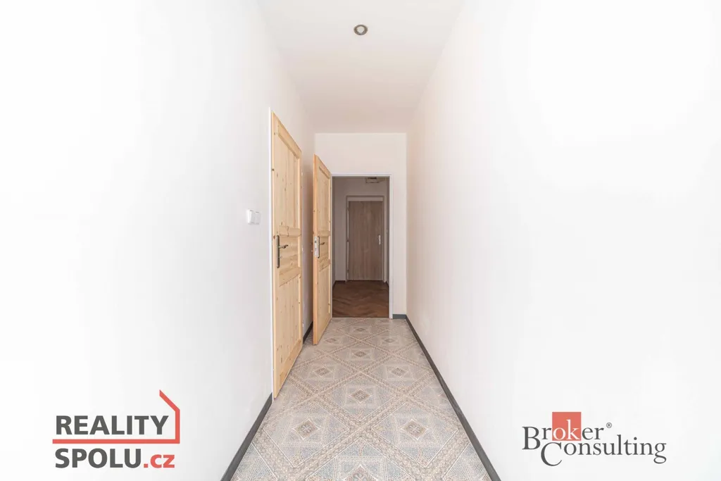 Při vstupu do bytu se ocitnete v malé chodbičce, kde si můžete odložit vše potřebné. Dále pokračujete do větší chodby, ze které vedou vstupy do 3 místností. Tím je WC, zrekonstruovaná koupelna se sprchovým koutem a moderní kuchyně s prostornou linkou. Následuje obývací pokoj s výklenkem, který dodává místnosti útulný a příjemný dojem. Poslední místností tohoto bytu je pokoj, kde je chytře využitý prostor na spaní pod stropem, čímž se zvětšil prostor a poskytlo se tak dostatek úložného prostoru.