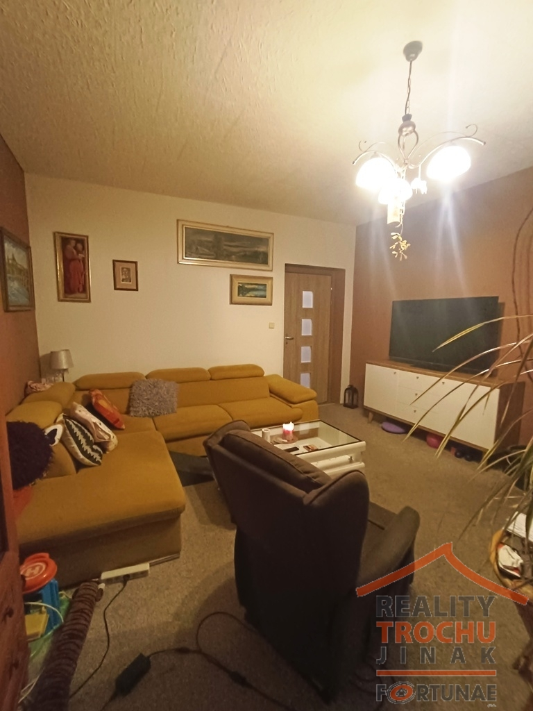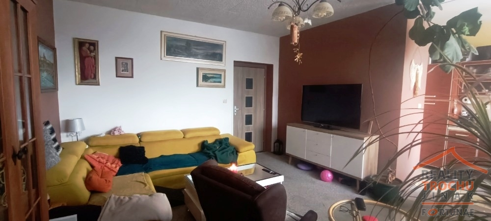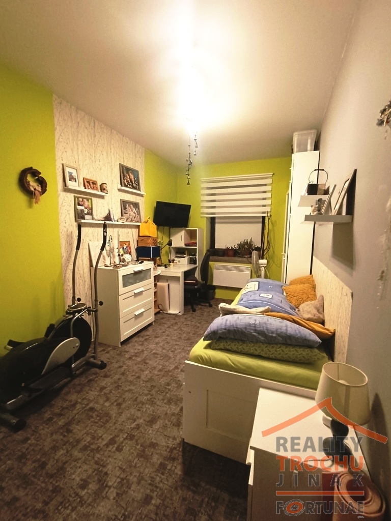 3 obytné místnosti, kuchyň, předsíň a příslušenství: koupelna, WC, komora a sklepní koje.