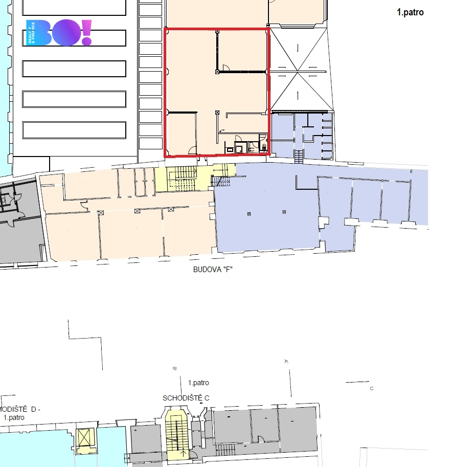 Služby: 85 Kč/m²/měsíc bez DPH (teplo, TUV, studená voda/kanalizace, odvoz odpadu, úklid společných prostor a sociálek, zajištění 24/7 přístupu)
