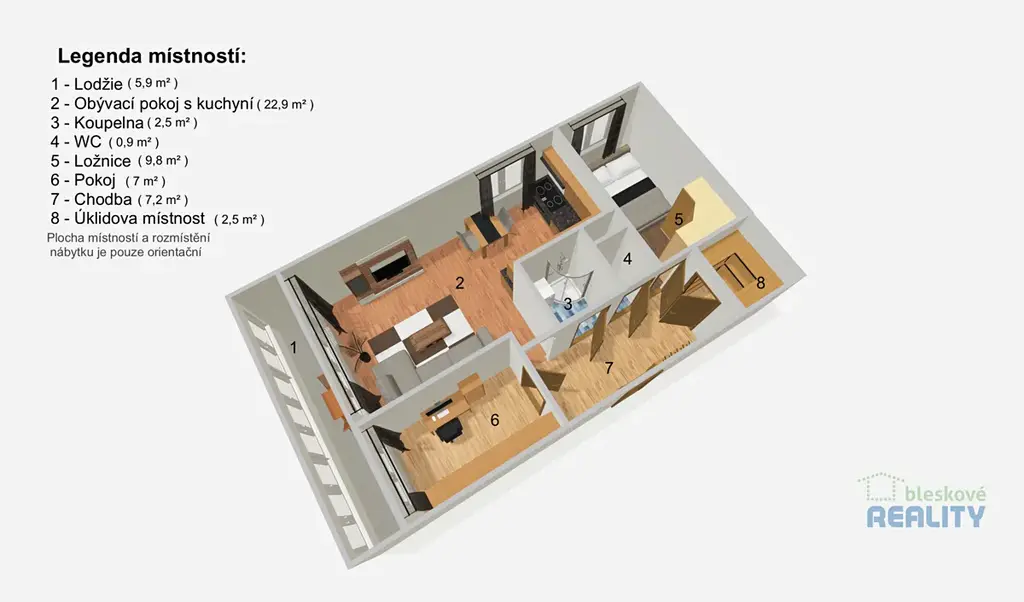 Byt je kompletně zařízený a připravený k okamžitému nastěhování, což z něj činí ideální volbu pro ty, kteří hledají pohodlné bydlení bez nutnosti dalších investic. Dispozice nabízí dostatek prostoru jak pro rodinu, tak i pro páry či jednotlivce, kteří ocení oddělené místnosti.