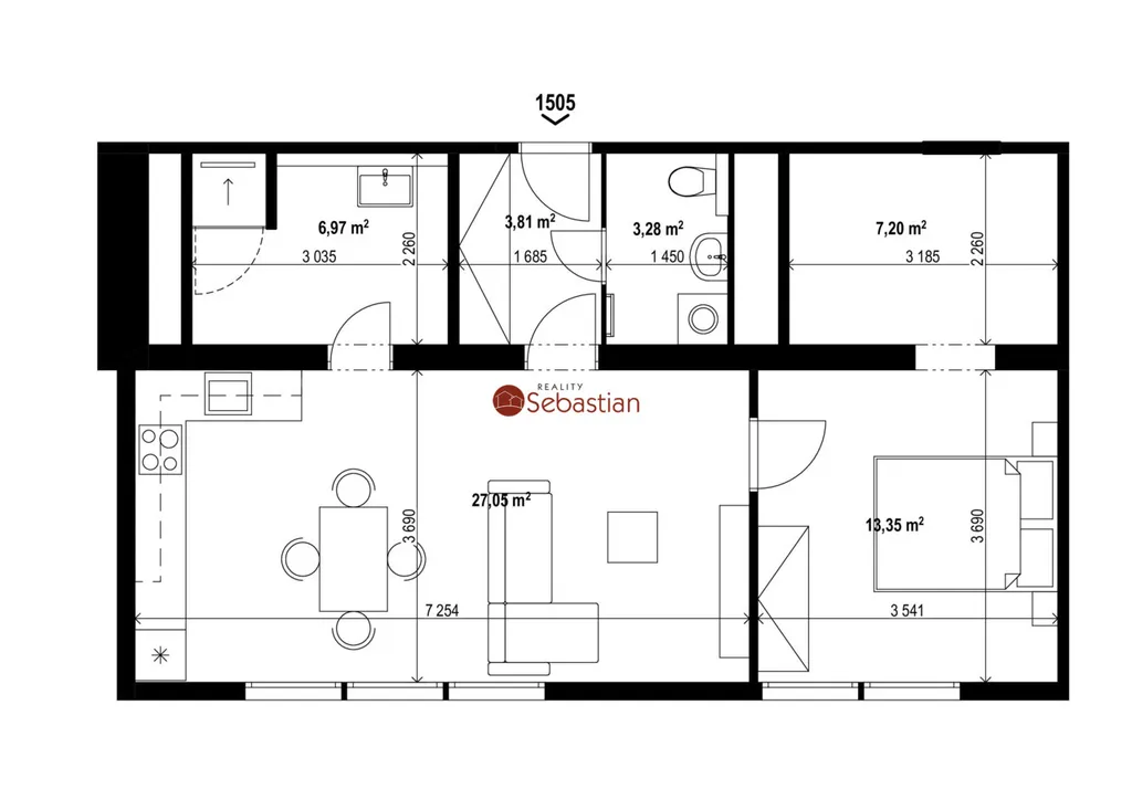 Byt 2+kk v 15. nadzemním podlaží po kompletní rekonstrukci o celkové rozloze 60,14 m2 orientovaný na západní stranu. Byt 2+kk v 15. nadzemním podlaží po kompletní rekonstrukci o celkové rozloze 60,14 m2 orientovaný na západní stranu. Byt je vhodný pro dvě až tři osoby.