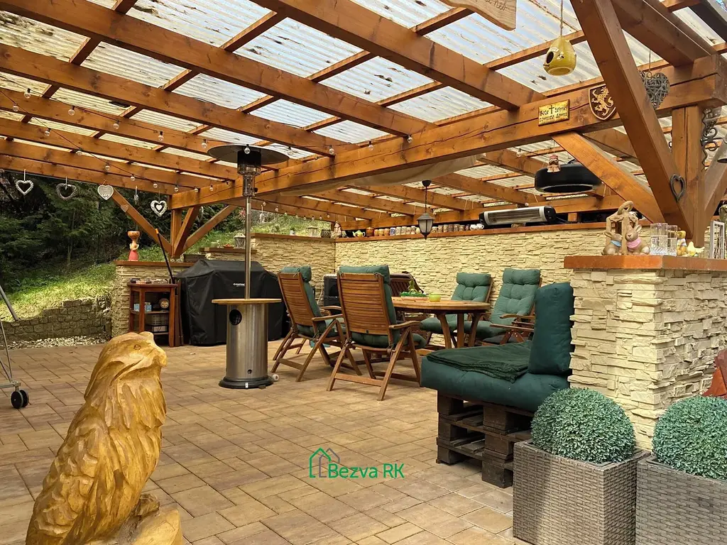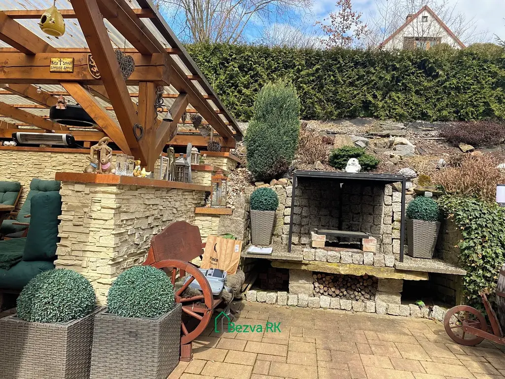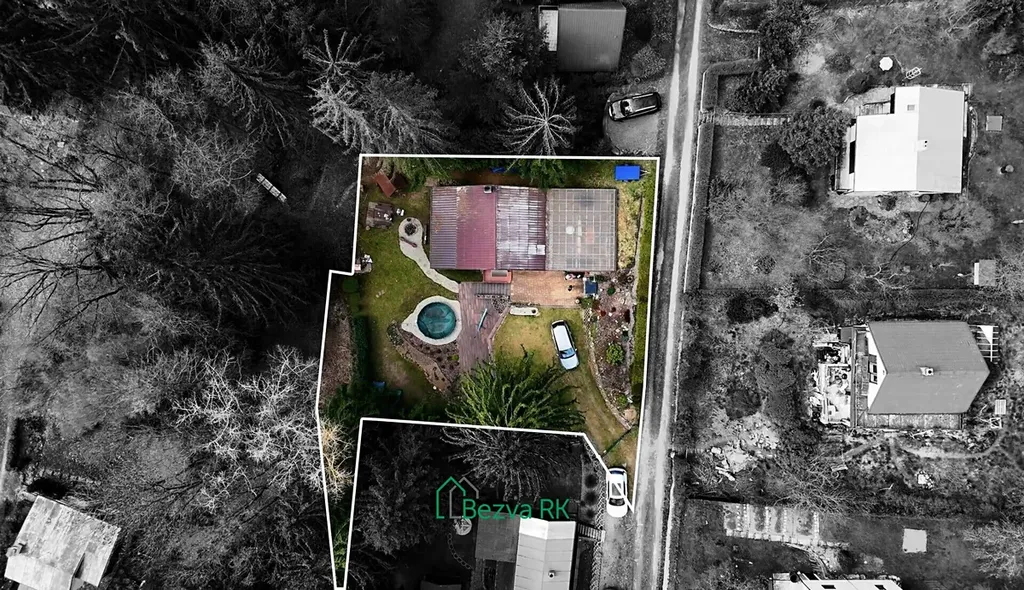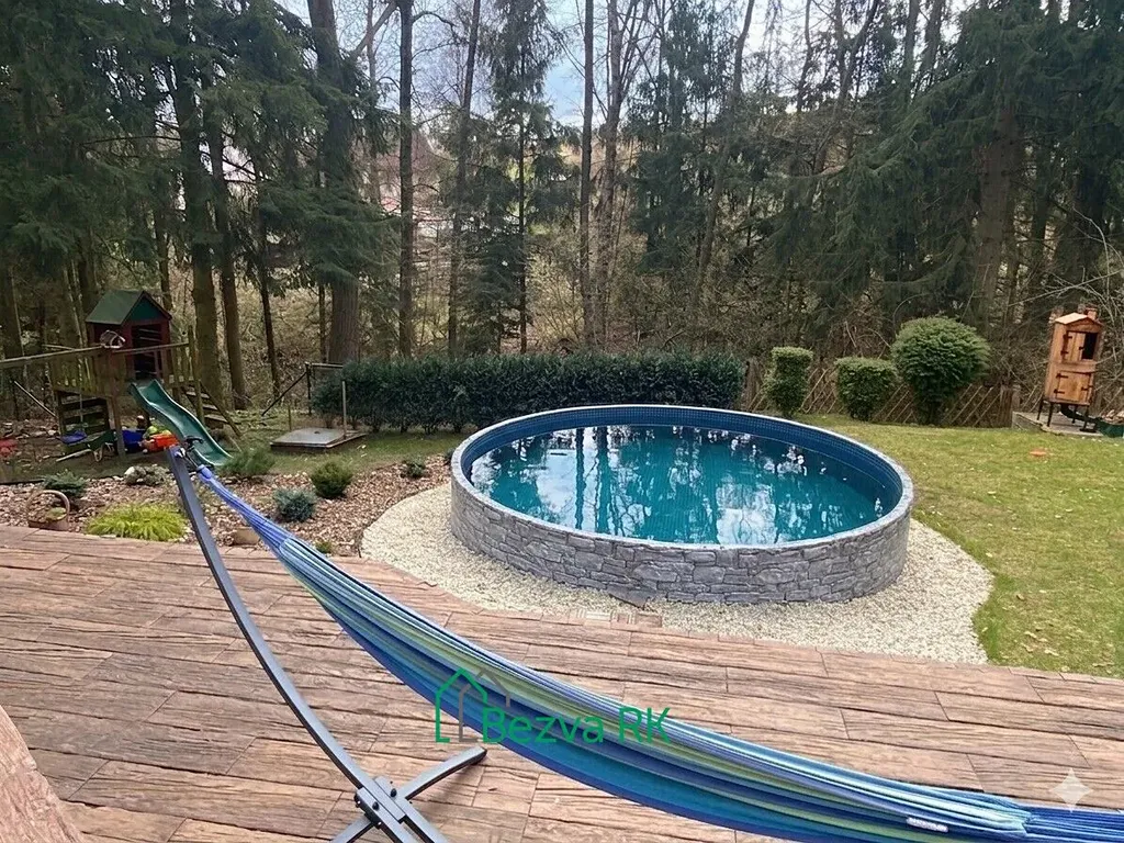 Venkovní prostor je skutečnou oázou klidu. Dominantou zahrady je nádherná zastřešená terasa, která plynule navazuje na prostor s bazénem a zahradu. Milovníci klasiky ocení kamenné ohniště, zatímco praktickou stránku věci zajišťuje venkovní domeček na nářadí a prostorný sklep pod chatou. Nemovitost je technologicky vybavena vlastní vodou z hlubinného vrtu, čistírnou odpadních vod (ČOV) a připojením na elektřinu 220/380V.