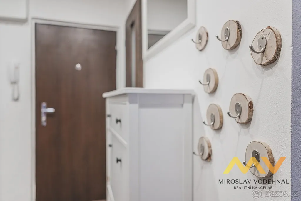 Kuchyňská linka je vybavena vestavěnými spotřebiči (myčka, indukční varná deska, digestoř, lednice s mrazákem) a praktickou spižírnou. Byt se pronajímá částečně vybavený – zůstává veškerý vestavěný nábytek.