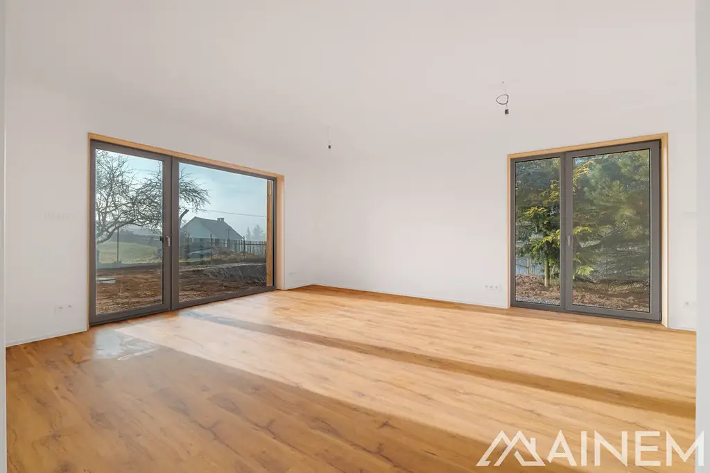 Parkování je zajištěno na nové příjezdové cestě přímo u domu, kde pohodlně zaparkují dvě auta. Dům je navržen jako velmi energeticky úsporný – o vytápění i ohřev vody se stará tepelné čerpadlo, takže měsíční náklady na provoz zůstanou příjemně nízké. To oceníte nejen dnes, ale i do budoucna.