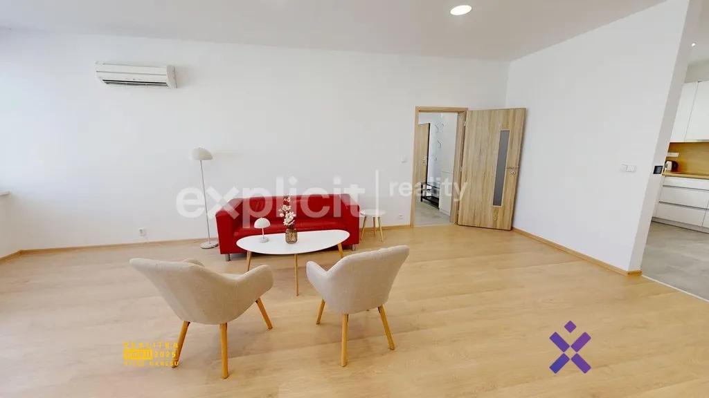 Byt k dlouhodobému pronájmu 2+kk s hlavním prostorem velkolepého obývacího pokoje a prostorné kuchyně s místem na velký jídelní stůl a dalším samostatným pokojem, který je vybavený šatními skříněmi i psacím stolem. Pokoj je oddělený vstupní chodbou bytu, zde naleznete klid od hlavního dění v bytě.