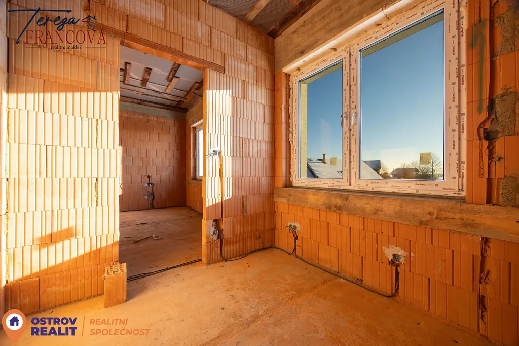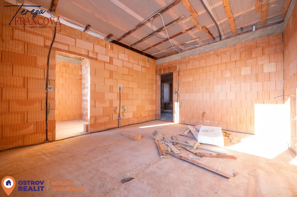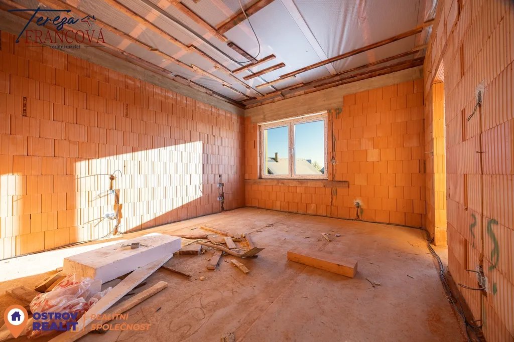 Dům je postaven z prvotřídních materiálů – systém Heluz, stropy Spiroll a minerální izolace 480 mm garantují dlouhou životnost i výborné izolační vlastnosti. Objekt je již uzavřený, osazen plastovými okny s trojsklem, vstupními dveřmi i garážovými vraty, elektroinstalace je rozvedena a pokračují práce na interiéru.