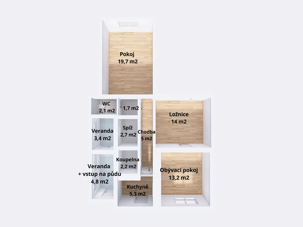 Půda o rozměrech 52 m2.