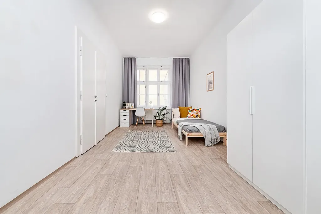- zařízený (šatní skříň, závěsy a záclony, postel včetně lůžkovin, stůl + židle)