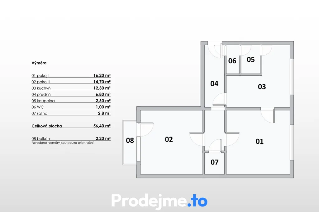Byt je dispozičně řešený jako 2+1 o užitné ploše 56,4 m² a má velmi praktické uspořádání. Základem jsou dva samostatné pokoje, které poskytují dostatek místa pro obývací část i plnohodnotnou ložnici. V kuchyni je dostatek prostoru pro moderní linku i jídelní stůl.