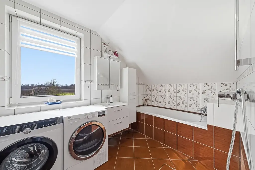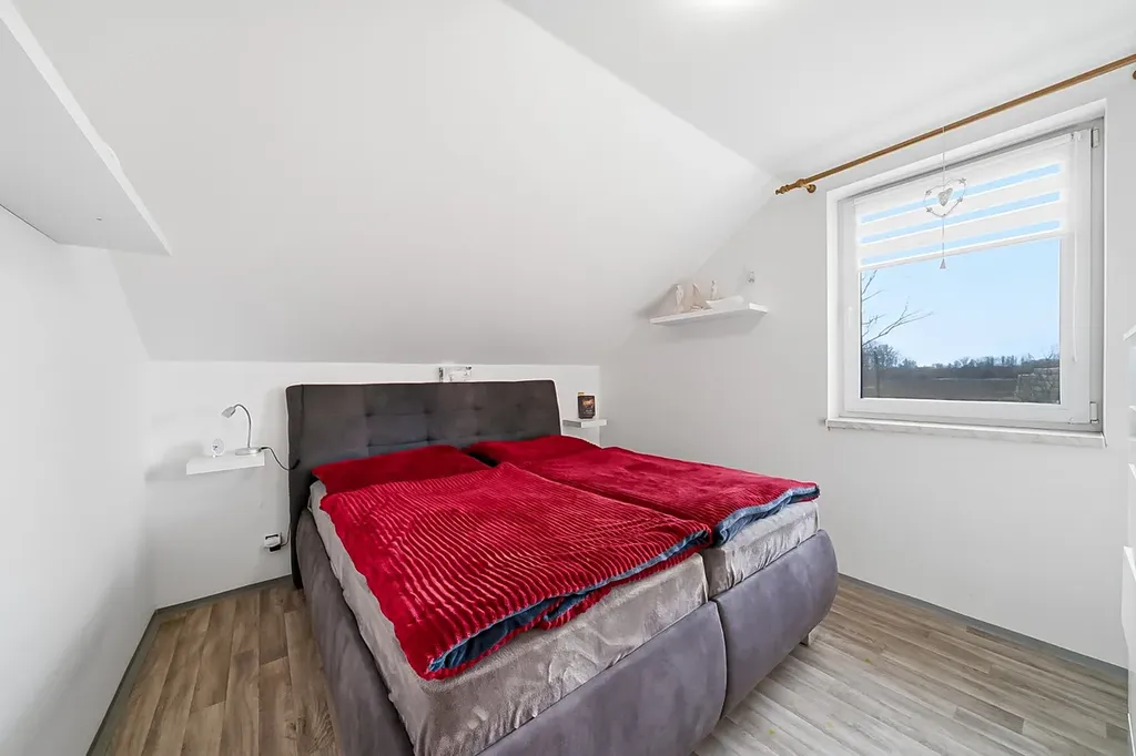 Dům nabízí pět neprůchozích pokojů, dvě koupelny (sprchový kout + vana), samostatné WC, komoru, technickou místnost, půdu a balkón.