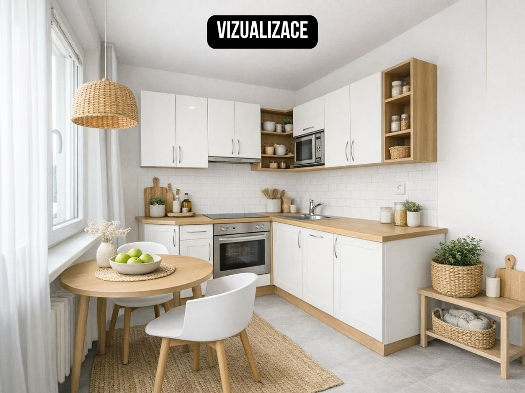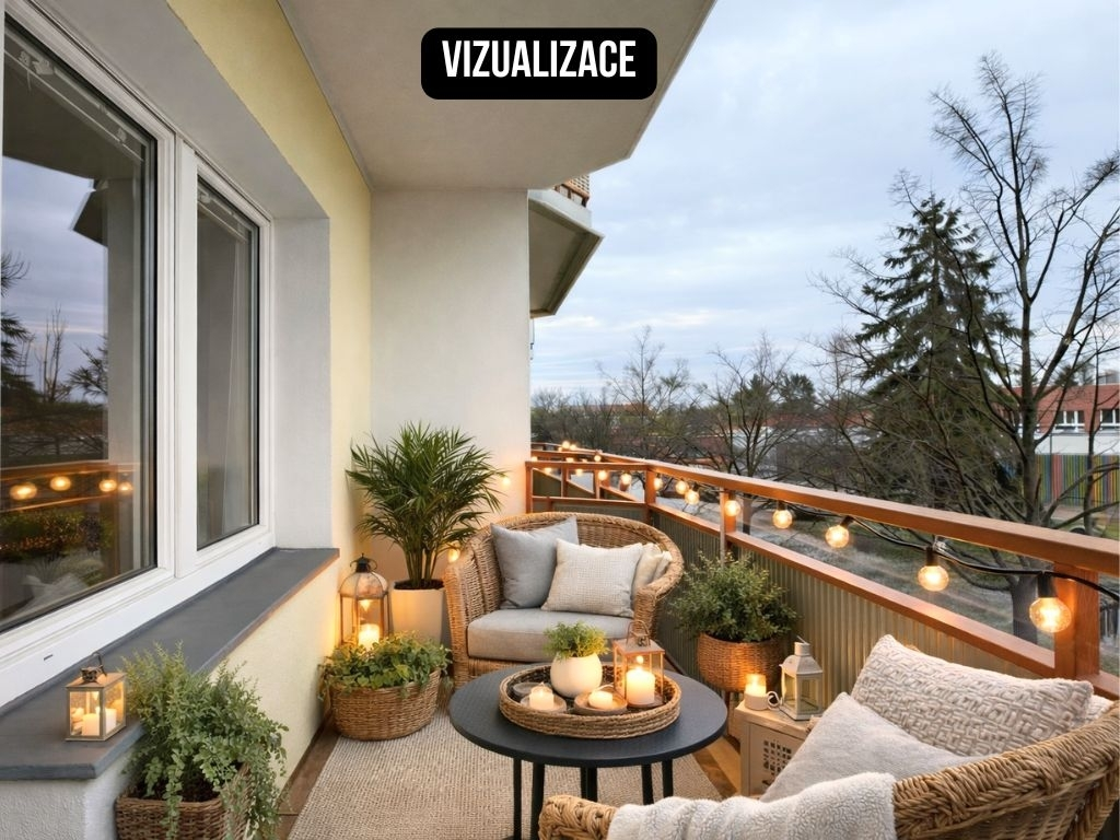 Kuchyně je vybavena spotřebiči – troubou, varnou deskou, digestoří, mikrovlnou troubou a myčkou nádobí. Nechybí ani prostor pro pračku a dostatek místa pro jídelní nebo barový stůl. Praktickým bonusem je omyvatelná stěna u kuchyňské linky. Dominantou jsou dva prostorné, neprůchozí pokoje – ložnice a obývací pokoj se vstupem na balkon. Všechna okna jsou orientována na jih, díky čemuž je byt krásně prosvětlený a působí velmi útulně a teple. Příjemným benefitem je balkon o ploše 4,6 m², který rozšiřuje obytný prostor a nabízí místo pro relax i drobné posezení. Koupelna disponuje sprchovým koutem, umyvadlem a moderními posuvnými dveřmi. Toaleta je samostatná. Byt dále nabízí prostornou vstupní chodbu s dostatkem místa na úložný prostor. K bytu náleží sklepní kóje v přízemí domu (o výměře cca 1,45 m²) a k dispozici je také společná kolárna. Dům má zadní vstup do klidného vnitrobloku se zelení. Lokalita