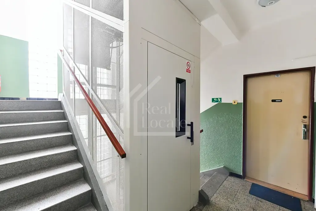 Byt se nachází v 5. podlaží udržovaného cihlového domu a díky orientaci dvou místností na východ a dvou na západ a nabízí příjemné světelné podmínky po celý den.