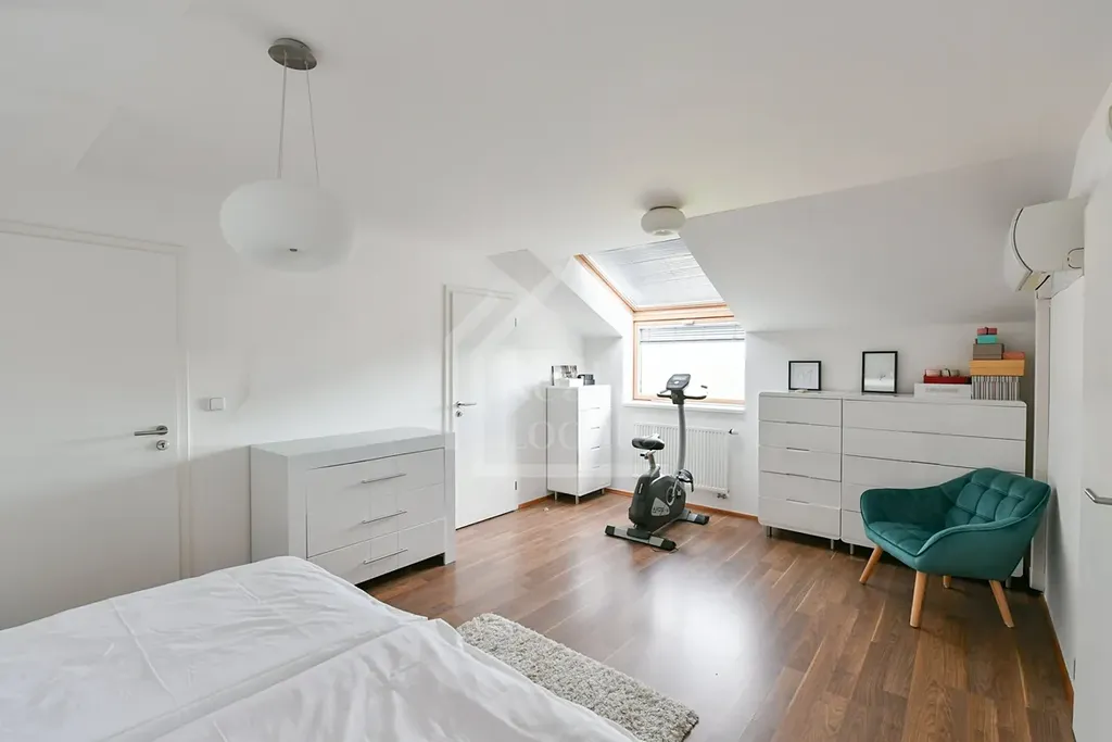Nemovitost disponuje prostorným obývacím pokojem s kuchyňským koutem v přízemí, čtyřmi samostatnými ložnicemi, moderní koupelnou, samostatnou toaletou a dostatkem úložného prostoru. Velkým benefitem je terasa, zahrada a balkon, které poskytují příjemné prostory k odpočinku s krásným výhledem. K domu náleží také sklep a garáž pro dvě auta.