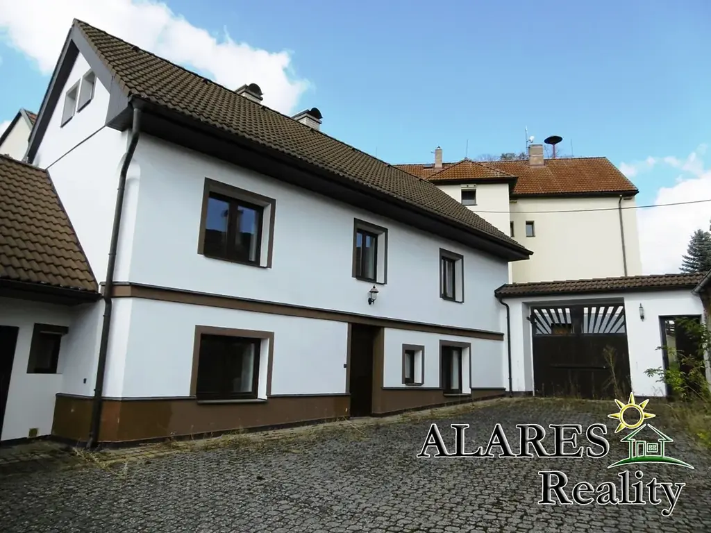 Bývalá hospodářská budova předělaná na technickou místnost, komoru, dílnu, dvojgaráž (el. vrata na dálkové ovládání), sklípek, a nad tím vším opět prostorná půda.