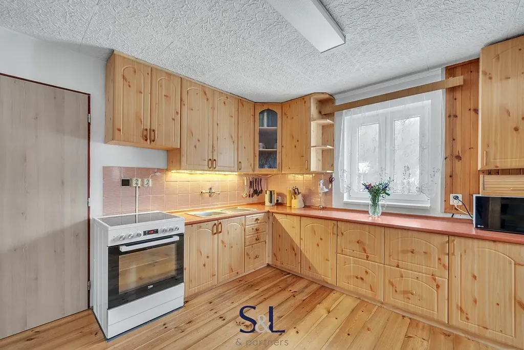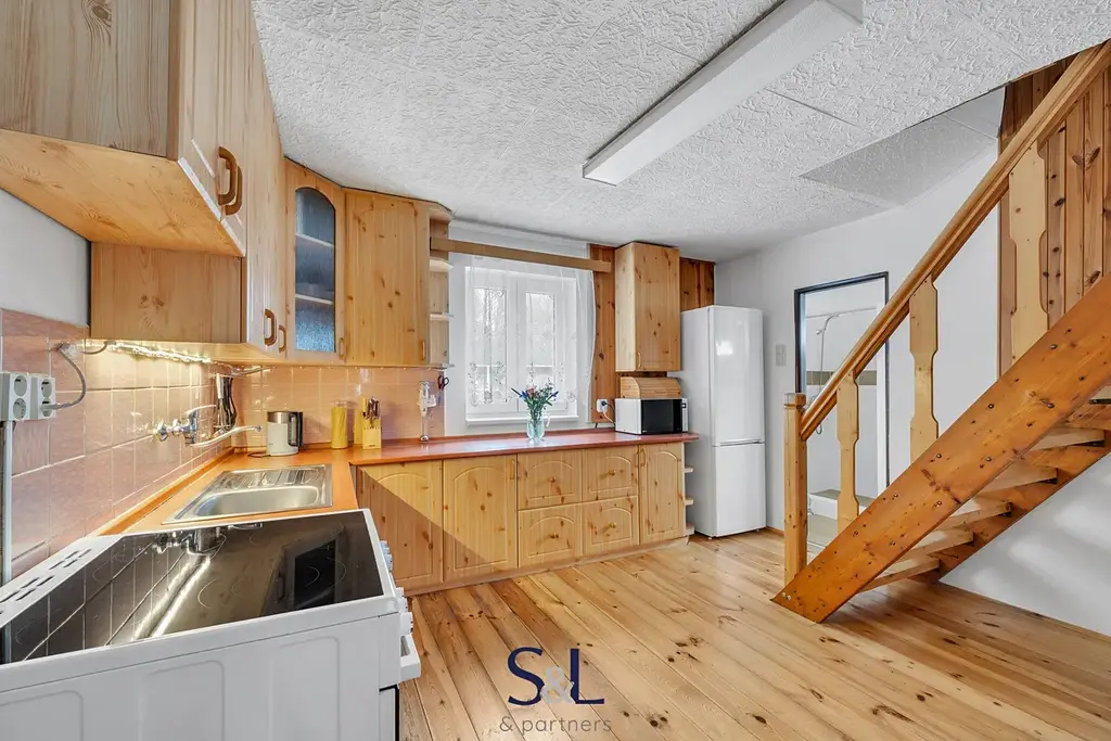 Dům je dispozičně řešený jako 4+1, kdy v přízemí domu je situován obývací pokoj s krbovými kamny, kuchyně vybavená elektrickým sporákem s troubou a lednicí.