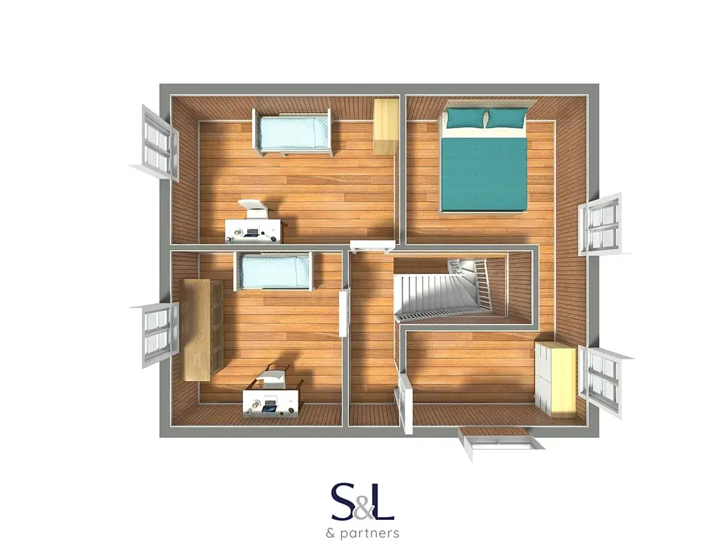 V podkroví domu jsou situovány dva pokoje a ložnice.