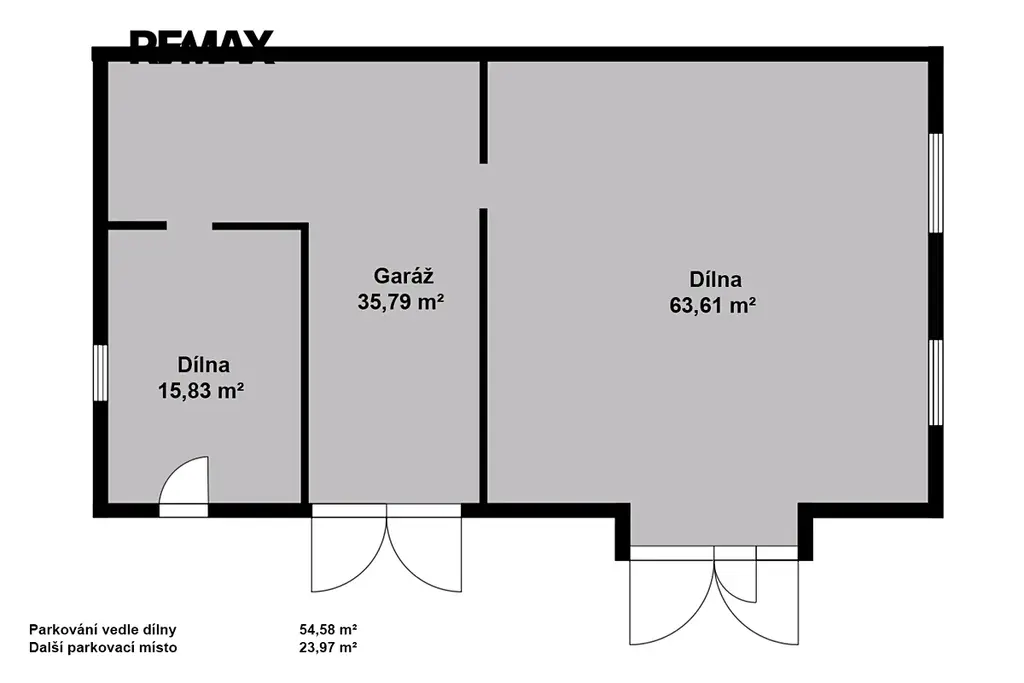 Na pozemku vás potěší prostorná dílna, kryté parkovací stání pro dvě auta a spolu s tím dvě další garáže. Dílna je odhlučněná, má protihlukové dveře a vrata a je vybavena funkční vzduchotechnikou.