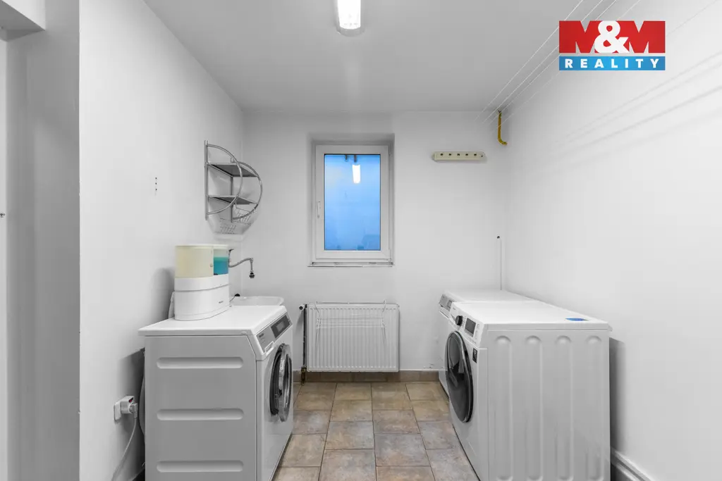 Dům je ideálně dispozičně řešen: nabízí 3 ložnice, světlou pracovnu, 2 koupelny ( jedna s vířivou vanou ), 2 samostatná WC, šatnu, terasu, prádelnu, kotelnu a úložné komory. O bezpečí vašich cenností se postará samostatná trezorovna. Exkluzivním prvkem je wellness s vnitřním bazénem a finskou saunou. Parkování zajišťuje dvojgaráž ( 38 m2 ).