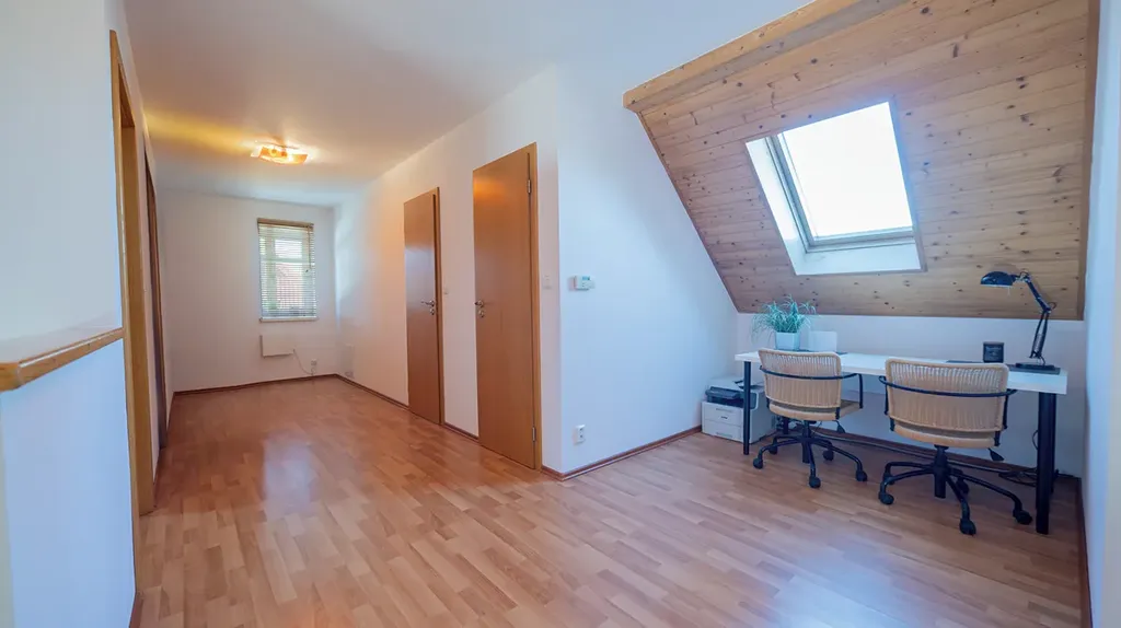 Dispozice 5+kk umožňuje praktické rozdělení na dva samostatné byty (4+kk a 1+kk). V části domu je samostatná koupelna, toaleta a příprava pro kuchyňskou linku. Možnost samostatného vstupu nabízí ideální řešení pro vícegenerační bydlení nebo kombinaci bydlení s podnikáním (např. kancelář, služby).